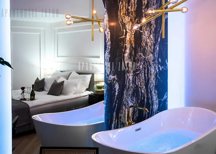 Il Aparthotel Zator Glam 52 Jacuzzisi trova a una distanza di 2 km da Kosciol pw. Matki Bozej Czestochowskiej w Grodzisku e offre strutture termali come una jacuzzi. Quest'appartamento offre l'accesso a un salone di bellezza, per garantire il massimo del relax.